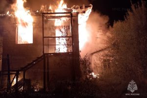 Двенадцать пожарных ночью тушили постройку в Износковском районе