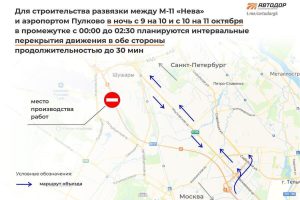 На М-11 «Нева» временно остановят движение ночью 10–11 октября