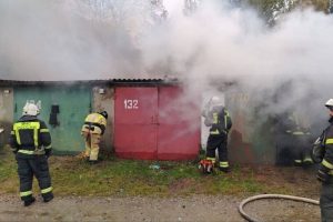 В Балтийске пожарные потушили горящие гаражи