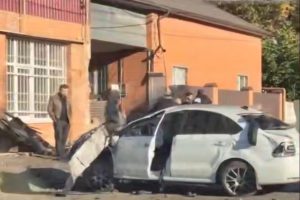 В Ростове легковушка протаранила ограждения дома