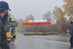 На Московском шоссе в Рязани столб упал на проезжую часть