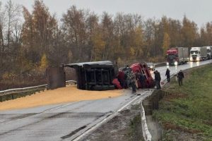 Перевернувшаяся фура с песком заблокировала дорогу под Ефремовым