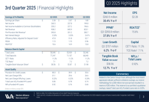 Western Alliance registra ricavi record e utili in aumento del 30% nel terzo trimestre 2025