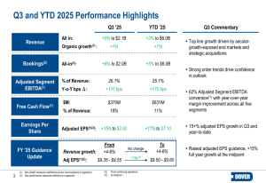 Dover registra una solida crescita dell’EPS nel terzo trimestre 2025, guidata dall’espansione dei margini e revisione al rialzo della guidance