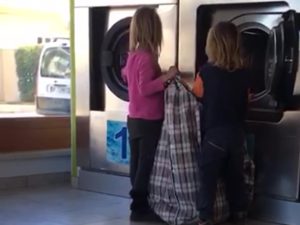 Bambini che fanno il bucato in un bosco: sicurezza e attenzione