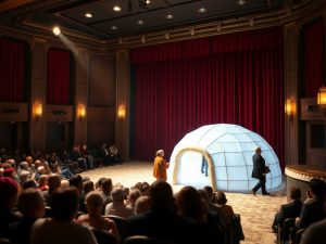 Caldaia del teatro guasta: pubblico a freddo, attrice continua con coperta, regista scherza su igloo