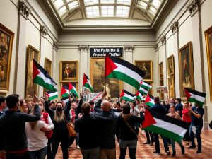 Flashmob pro-Palestina negli Uffizi: manifestanti esposti striscioni contro Israele