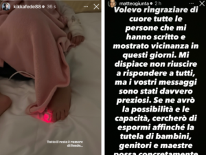 Pellegrini condivide foto della figlia in monitoraggio a letto, critica le strutture di assistenza