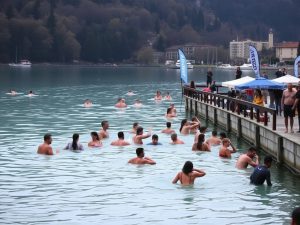 260 persone si tuffano nelle acque di 10–11 °C del Lago di Garda a Capodanno