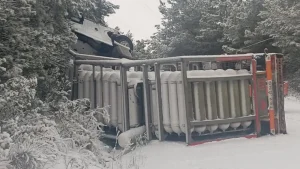 Camion con tubi di gas naturale cade a causa del gelo a Kastamonu, strada chiusa per sicurezza