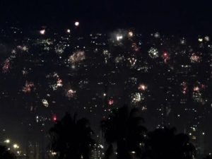 Fuochi d’artificio illuminano il lungomare di Napoli