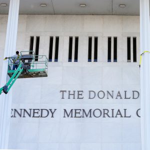 Il nome di Trump appare sulla facciata del centro delle arti performative