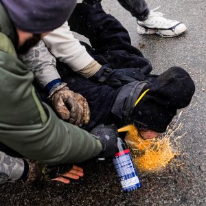 Video mostra agente di frontiera che spruzza peperoncino a uomo tenuto a terra a Minneapolis