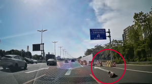 Bambino in pericolo: striscia lungo la carreggiata di un’autostrada cinese