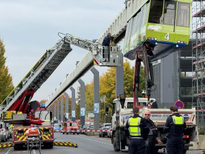 Incidente all’Università di Dortmund: autogrù collide con la H-Bahn, una persona ferita e indagini in corso