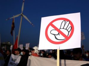 Vestas Italia, protesta su tetto capannone a Taranto «no trasferimento» La mobilitazione continua sul tetto di un capannone di Vestas Italia a Taranto. Accanto allo striscione, che recita «no trasferimento», è stato posizionato un manichino impiccato. Fonti Fonte: RSS di example.com Speculazione Etica Automatica Basata sulla Semplice Ovvietà del Buon Senso Comune Cosa vedo con…
