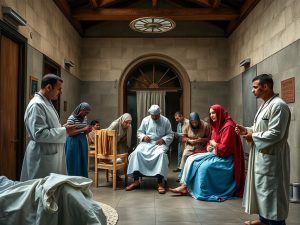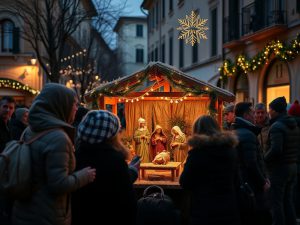 Napoli: opera d’arte che ritrae medici e lebbrosi tra pastori in un presepe sanitario