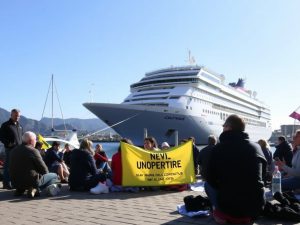 Ecologisti protestano al porto di Napoli per l’inquinamento delle navi da crociera