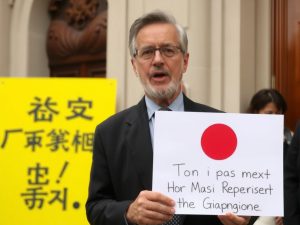 Professore Dall’Arno protesta davanti all’ambasciata giapponese a Roma per la scomparsa dei figli