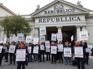Giornalisti di Repubblica protestano davanti all’Ex Mattatoio per la mostra dei 50 anni del quotidiano