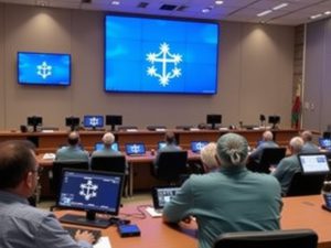 Questura monitora la cerimonia di chiusura del Giubileo nella sala operativa.