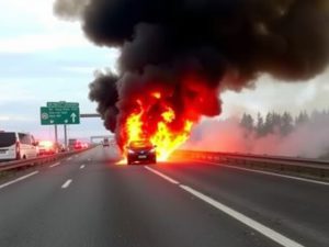 Auto in fiamme sull’A14 del Pesarese: vigili del fuoco spegneranno l’incendio senza feriti