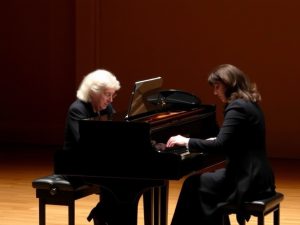 Duo pianistico Argerich‑Baldocci conquista Fermo: concerto sold out e standing ovation