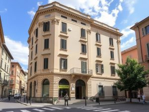 Edificio di San Severino Marche ripristinato dopo il sisma, pronto per abitazioni e negozi