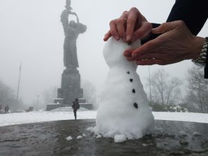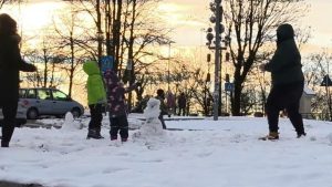 Nevicata a Superga: i bambini costruiscono pupazzi di neve sulla collina di Torino