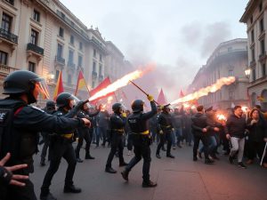 Scontri tra manifestanti e polizia a Torino durante il corteo per Askatasuna Durante un corteo a Torino, persone con i volti coperti hanno tentato di superare un cordone di polizia. In quell’istante sono state lanciate bottiglie contro le forze dell’ordine. Fonti Fonte: Non indicata. Speculazione Etica Automatica Basata sulla Semplice Ovvietà del Buon Senso Comune…