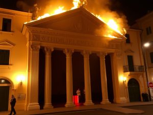 Incendio sulla facciata del Teatro Petruzzelli: vigili del fuoco intervenuti e area transennata