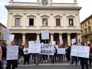 Sudd Cobas protesta davanti agli Uffizi per chiedere stabilità ai lavoratori precari dei musei fiorentini