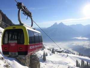 Fiamma olimpica trasportata in funivia sulle Dolomiti nella 52ª tappa del percorso