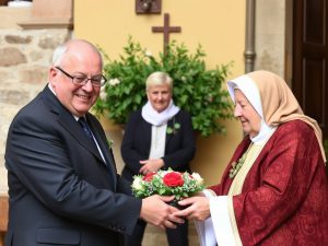 Il sindaco Zuccarini consegna pergamena a suor Ernestina, centenaria di Foligno