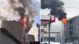 Incendio sul tetto di un edificio di 5 piani a Sultangazi: uomo ferito dopo salto dal balcone